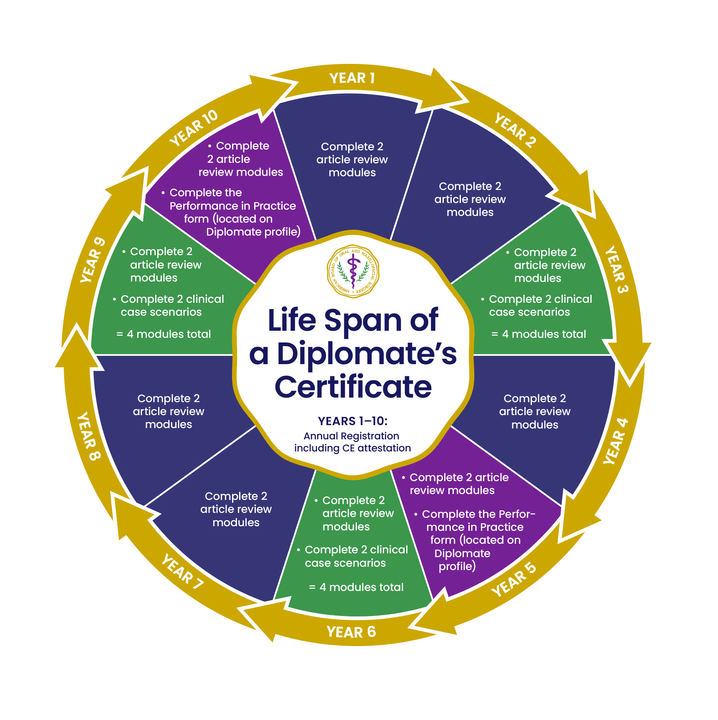 You will find your CM requirements for the year by logging into your Diplomate profile. You can view the full 10-year cycle requirements in this diagram.